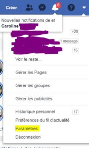 Pour l’activer, connectez-vous sur votre compte, puis cliquez sur l’icône « caret bas » à côté de l’icône « point d’interrogation » et cliquez sur « Paramètres » :