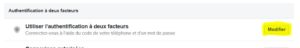 Défilez un peu la page, puis allez sur « Authentification à deux facteurs » et cliquez sur « Modifier » :
