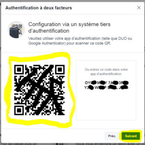 Puis scannez le code à l’écran et cliquez sur « Suivant » :