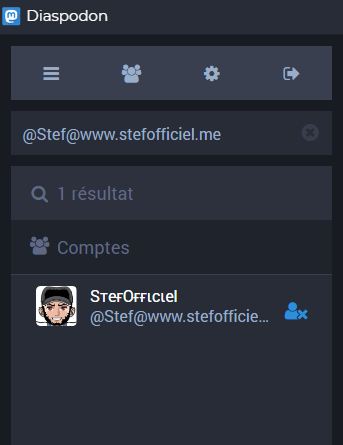 Pour me suivre, tout simplement « @pseudo@www.NomDuSite.tld » dans la barre de recherche, pour moi : « @Stef@www.stefofficiel.me » !