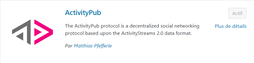 NOTE : J’ai désactivé l’ActivityPub sur ce Blog, c’est en fait un peu relou, ça affiche l’intégralité du billet sur Mastodon et ça n’incite pas les gens à consulter le blog et donc à lire les autres articles. Dommage. Je reviendrais sûrement si les extensions prévoient de ne mettre qu’un résumé !