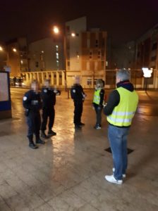 Et on distribue du tract, on fait du bruit, la Police Municipale passe, parle avec une des membres, puis un autre membre nous propose d’aller tracter à la sortie de la gare, nous étions donc 6 environ, devant la gare, sur la place publique, on discutait entre nous, avec nos gilets sur le dos, on allait boire un coca et manger une part de galette et ça faisait à peine 20 réelles secondes qu’on était là, qu’une voiture de la Police Nationale vient à tourner autour de nous.