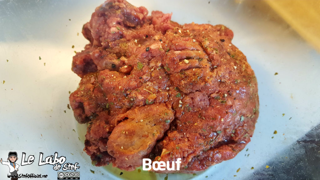 J’ai utilisé des steak surgelés, je les ai décongelés. Il faut ensuite écraser grossièrement les steak et les placés dans un cul de poule, ou un saladier.
