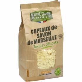 * Il existe du savon de Marseille vendu déjà en copeaux, si vous n’en trouvez pas, un bloc de savon avec une râpe à fromage suffisent.
